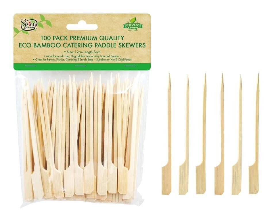 2X 100pcs ECO Paddle Skewers BBQ Kebab Meat Satay Stick Bamboo Wooden Catering