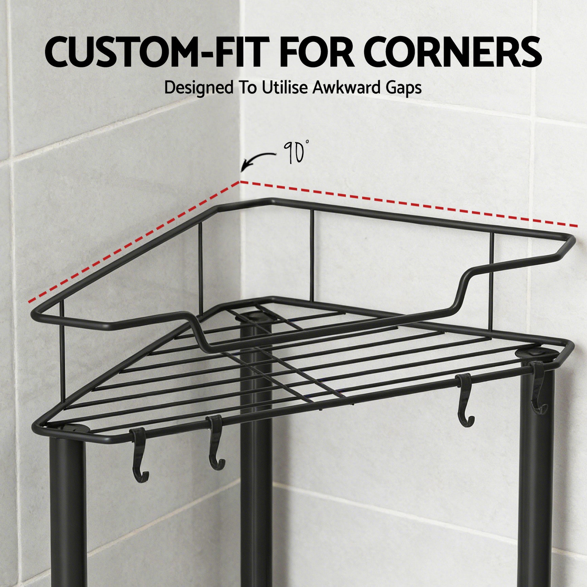 This versatile floor standing corner shower caddy is the perfect bathroom storage solution. Its modular tiers offer customisable organisation for shampoos, soaps, and more. Made from strong metal with a sleek finish, it is ideal for any family bathroom. The tool-free setup makes installation quick and simple. Enjoy a clutter-free, tidy shower space with this practical organiser.