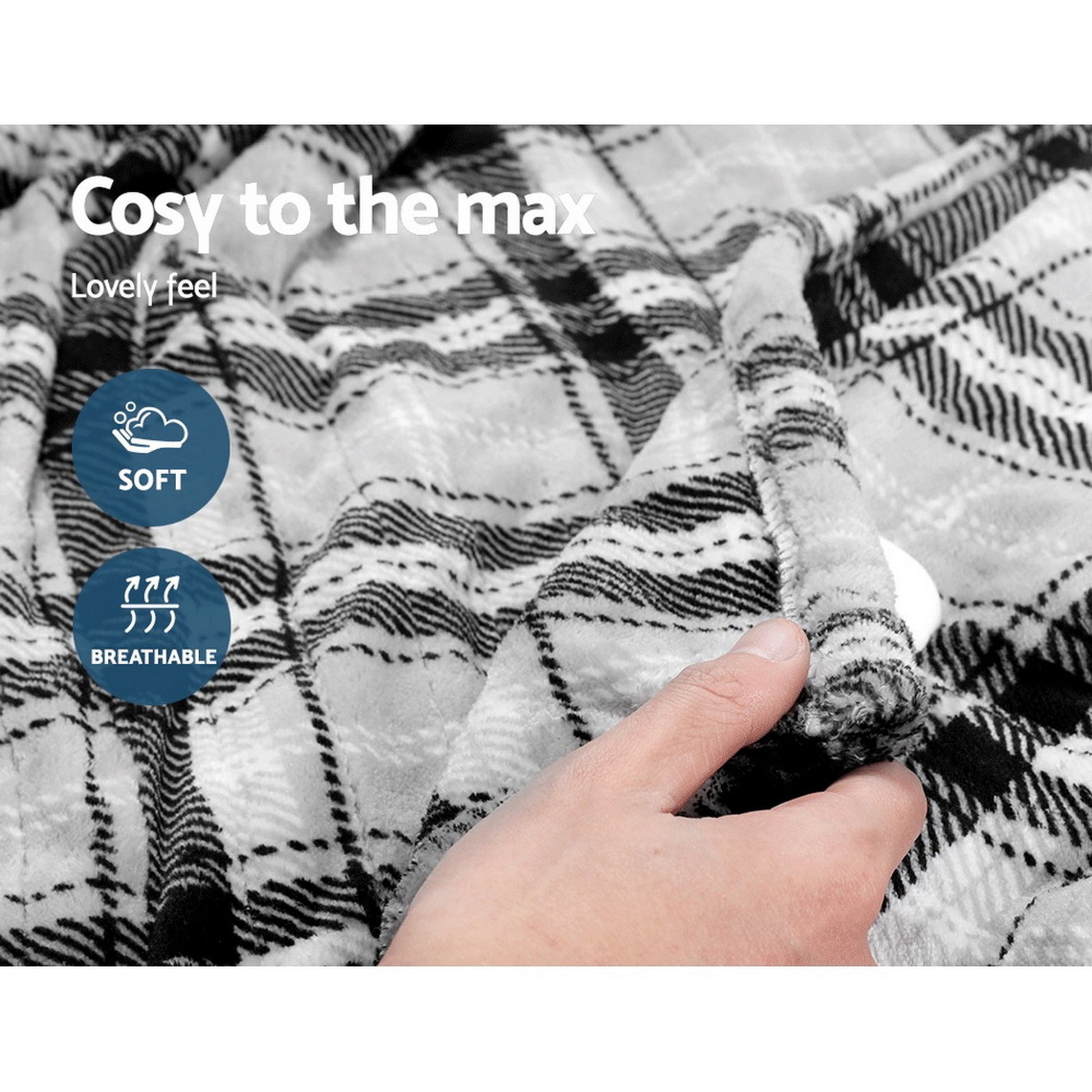 Giselle Bedding Electric Throw Rug Flannel Snuggle Blanket Washable Heated Grey and White Checkered