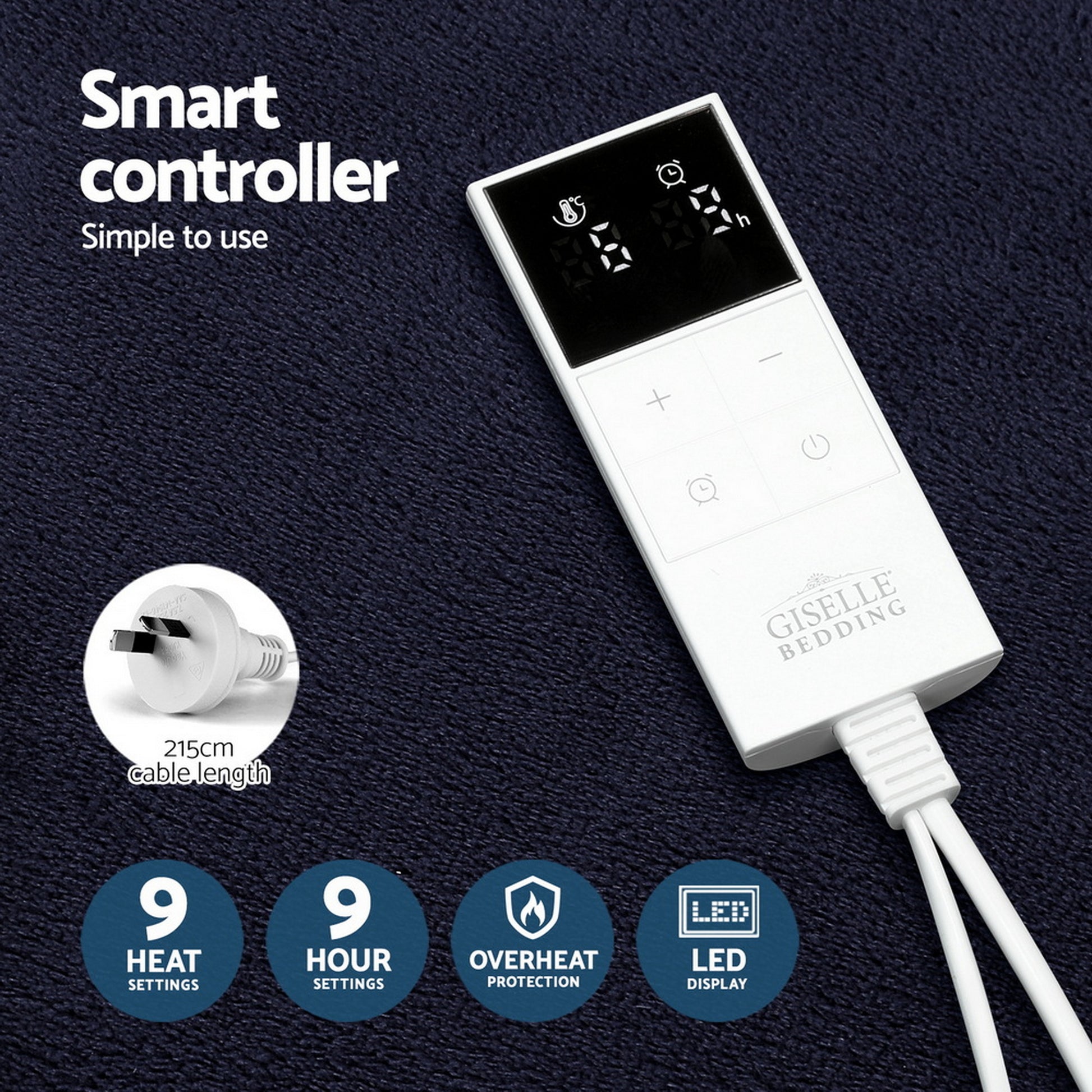 Get that warm and cosy feeling every day with a Giselle Bedding Electric Throw Rug. The double-sided throw rug is made from premium flannel and sherpa fabric, our electric throw rug is just the thing to help you cut down on costly heating bills while still enjoying the heat up-close. The throw rug has all the features of our electric blankets with up to 9 temperature settings, a 9-hour timer, overheat protection, automatic shut-off and a detachable controller with LED display so you can always be in control of the temperature. It is anti-dust mite and bacteria and is machine washable for a clean blanket time and time again. Keep your bedroom or living room cosy and comfortable with a warm and huggable Giselle Bedding Electric Throw Rug.
