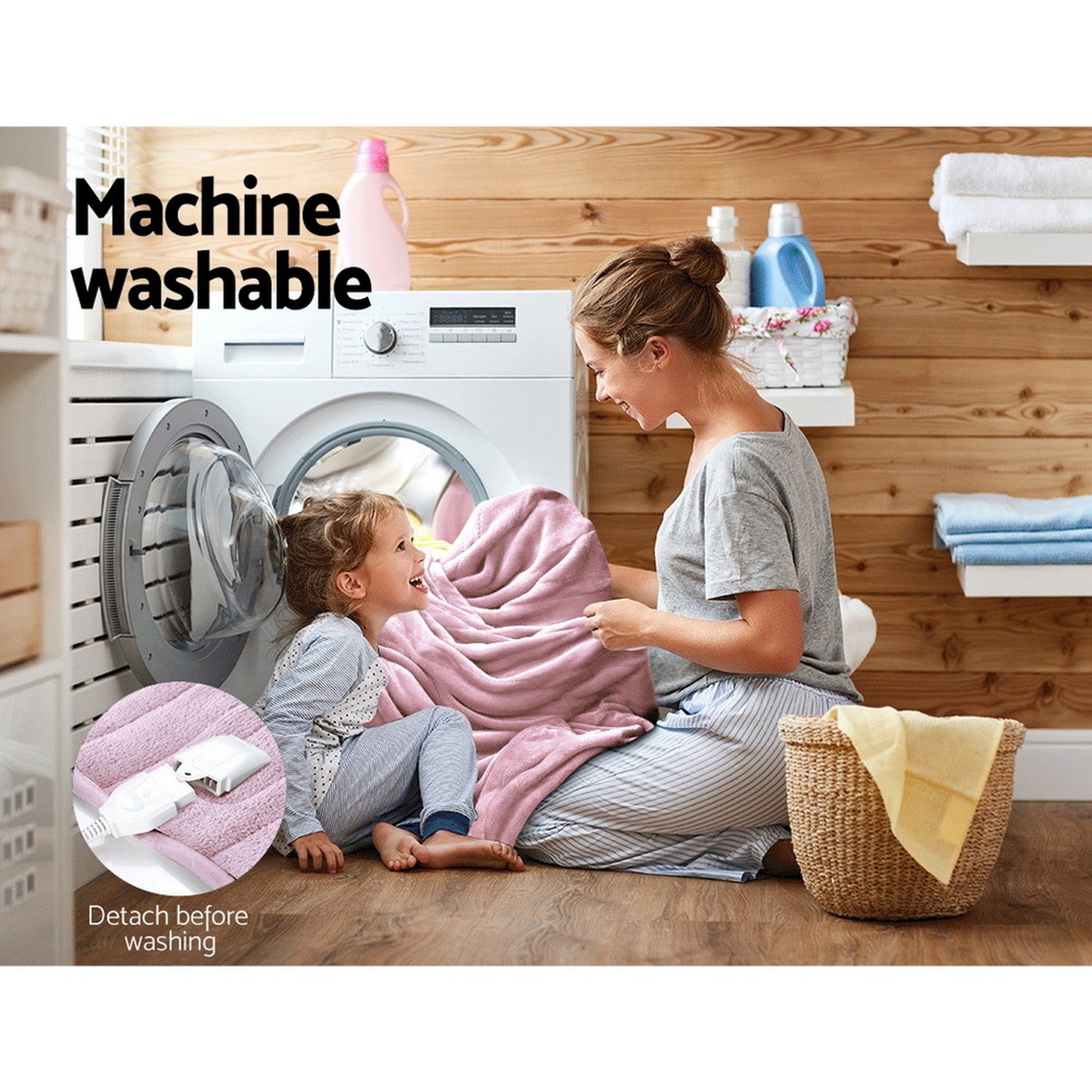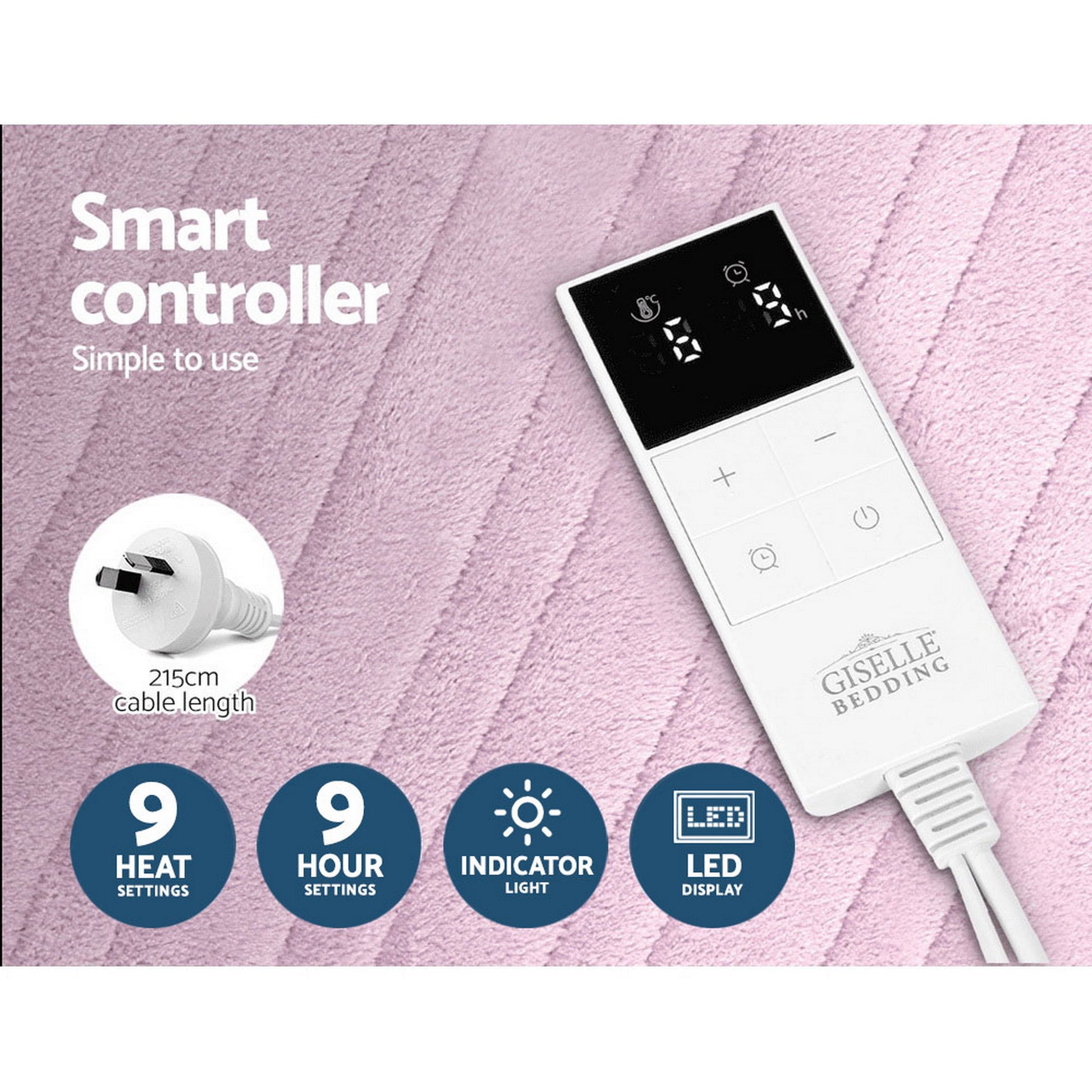 Giselle Electric Throw Rug Heated Blanket Fleece Pink