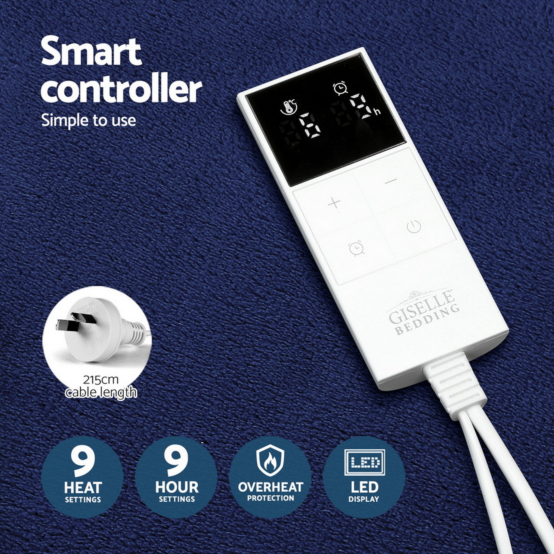 Get that warm and cosy feeling every day with a Giselle Bedding Electric Throw Rug. The double-sided throw rug is made from premium flannel and sherpa fabric, our electric throw rug is just the thing to help you cut down on costly heating bills while still enjoying the heat up-close. The throw rug has all the features of our electric blankets with up to 9 temperature settings, a 9-hour timer, overheat protection, automatic shut-off and a detachable controller with LED display so you can always be in control of the temperature. It is anti-dust mite and bacteria and is machine washable for a clean blanket time and time again. Keep your bedroom or living room cosy and comfortable with a warm and huggable Giselle Bedding Electric Throw Rug.