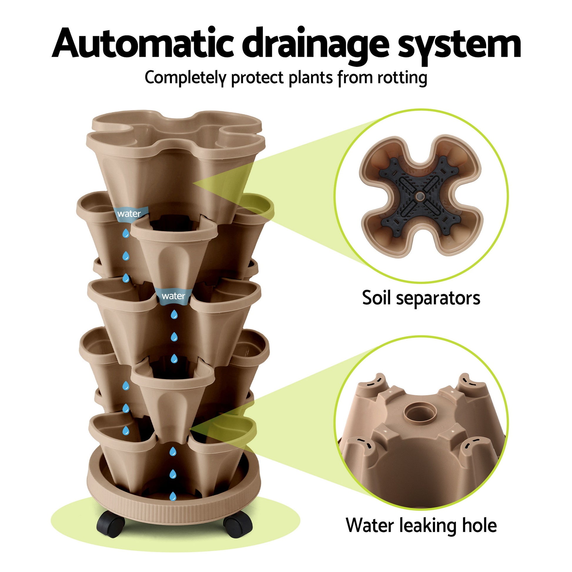 Green Fingers Garden Bed 5 Tier Vertical Garden Grey Strawberry Stackable Planters Herb Petunias Tan