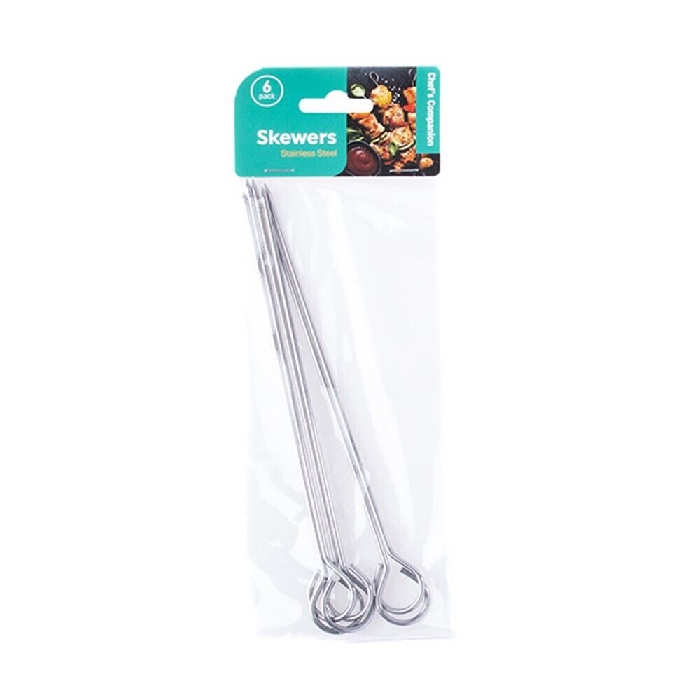 Stainless Steel 6 x Round Metal Skewers Silver BBQ Picnic Barbecue Party Needle